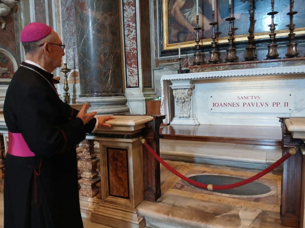 Durante sua estada na Cidade Eterna, Dom José participou, na quarta-feira (01), da Audiência Geral com o Papa Leão XIV, ocasião em que manteve um breve encontro pessoal com o Pontífice. Ainda no Vaticano, visitou a Basílica de São Pedro, onde atravessou a Porta Santa e rezou junto aos túmulos dos Papas Pio XII, São João XXIII e São João Paulo II.