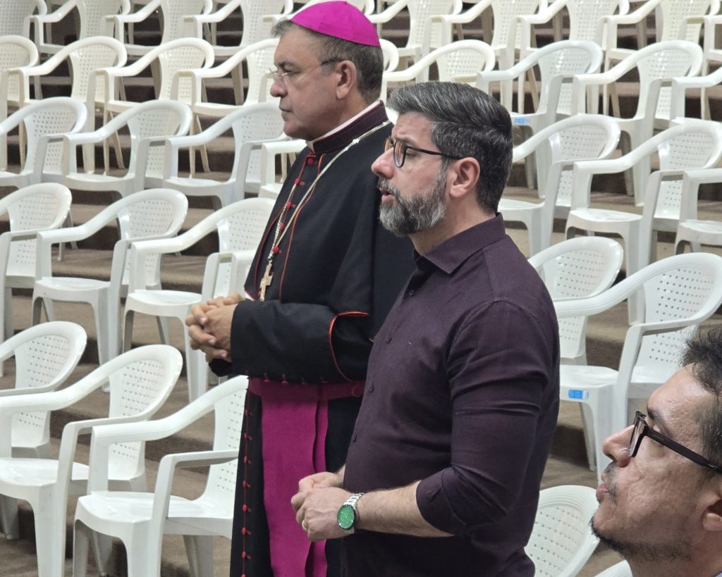 Durante sua fala, Dom Francisco destacou a importância de caminhar em unidade com a comunidade acadêmica, afirmando: