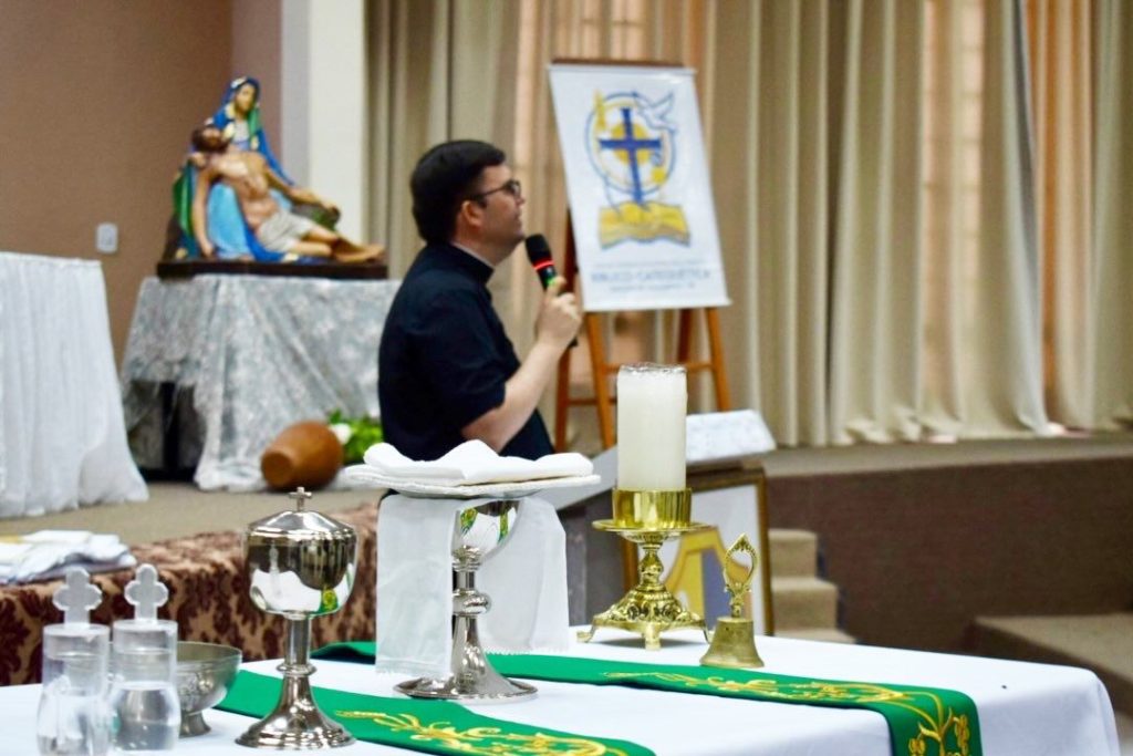 Organizado pela Comissão Diocesana para Animação Bíblico-Catequética, o encontro uniu uma programação intensa de estudo, oração e convivência fraterna. O tema central buscou superar a ideia de que o ensino da fé e a celebração dos mistérios são momentos isolados. Além dessa abordagem, os cursistas contaram com a disciplina de Catequese Mistagógica, que conduz o fiel para dentro do mistério celebrado. Para complementar a formação, o módulo encerrou focando nos Marcos Celebrativos do Catecumenato, apresentando oficinas práticas e reforçando o papel do catequista como um verdadeiro acompanhante no caminho da fé.