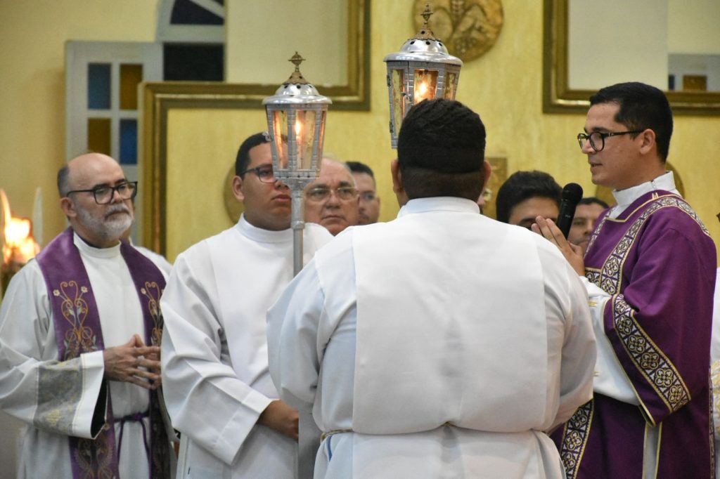 A celebração teve início às 17h, com a entrada solene do bispo diocesano, Dom Francisco de Assis, acompanhado dos novos formadores. O momento contou com a presença de diversos padres da diocese, seminaristas das etapas do Propedêutico, Discipulado e Configuração, além de religiosos(as), consagrados e numerosos fiéis leigos que se reuniram para testemunhar este importante passo na caminhada da Igreja local.