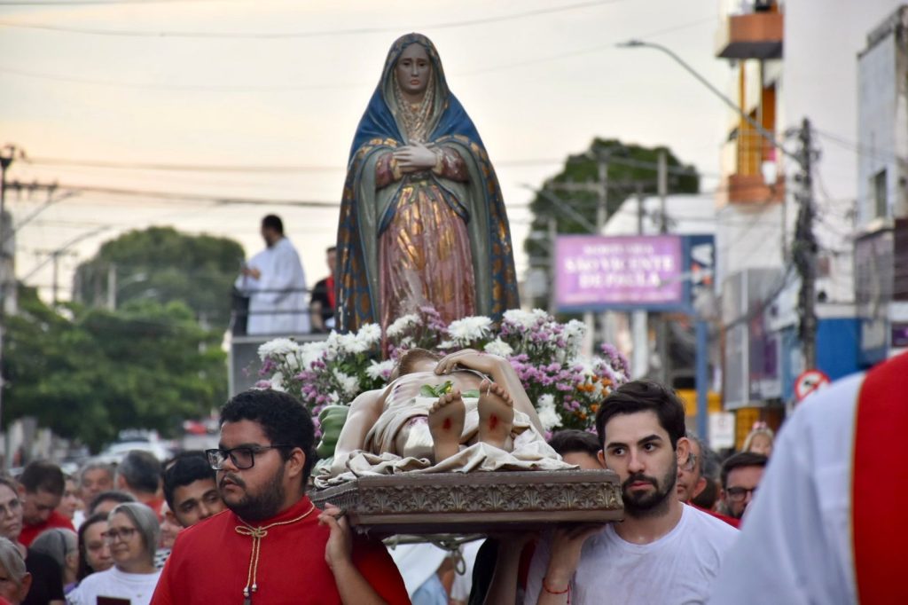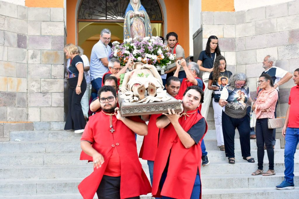 A Procissão do Senhor Morto, realizada na Sexta-feira da Paixão, recorda a morte de Jesus Cristo e convida os fiéis a meditarem sobre o mistério do sofrimento redentor. Mais do que uma tradição, este momento expressa a fé de um povo que reconhece, no sacrifício de Cristo, a manifestação maior do amor de Deus pela humanidade. Ao acompanhar simbolicamente o corpo de Jesus, os cristãos são chamados a refletir sobre suas próprias vidas, assumindo com responsabilidade o compromisso de viver o Evangelho no cotidiano.