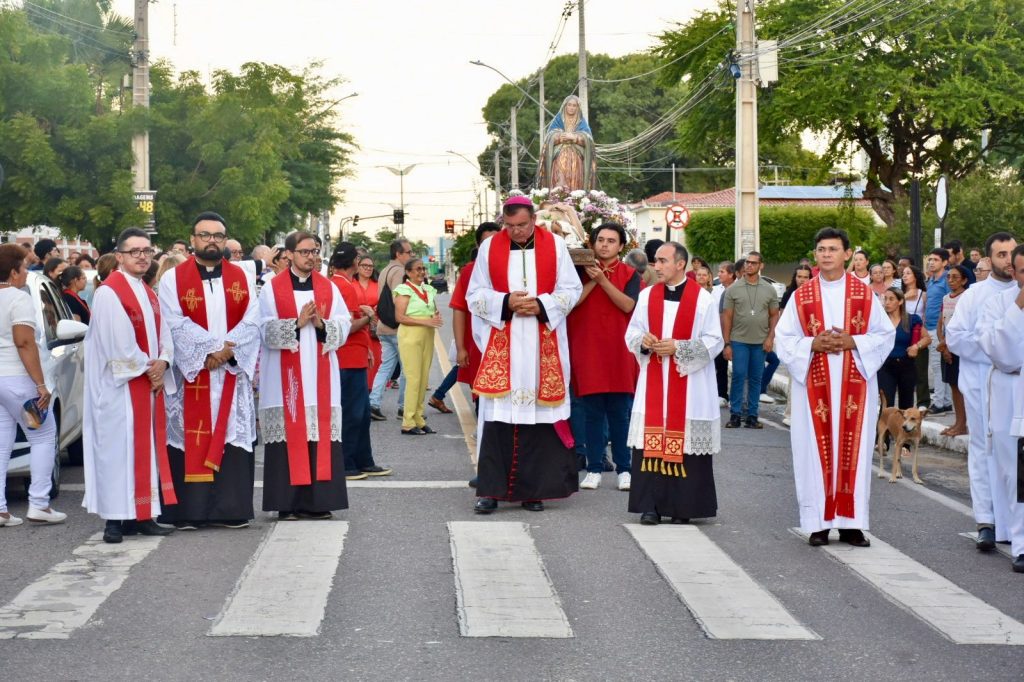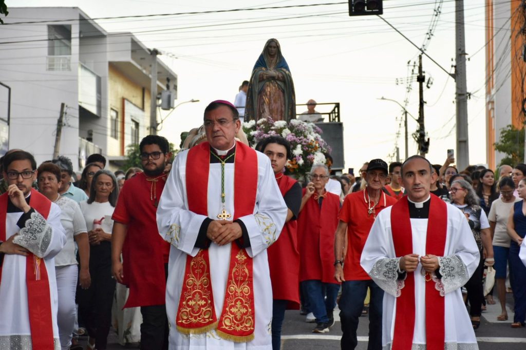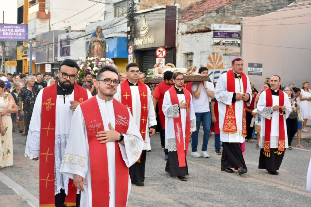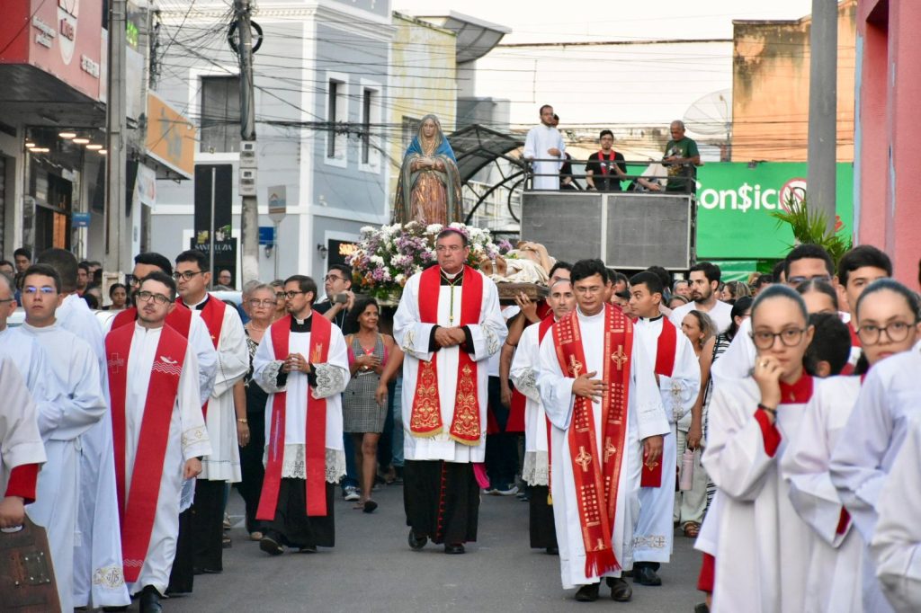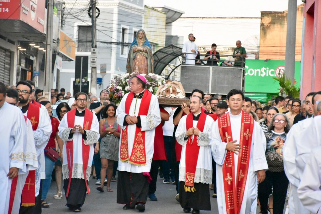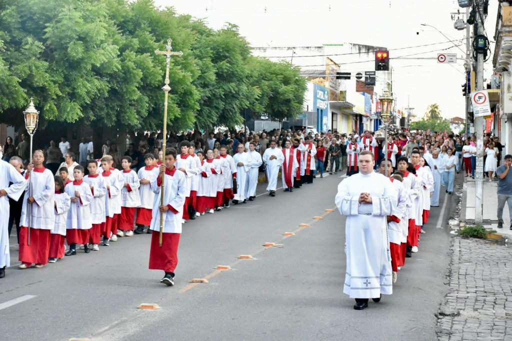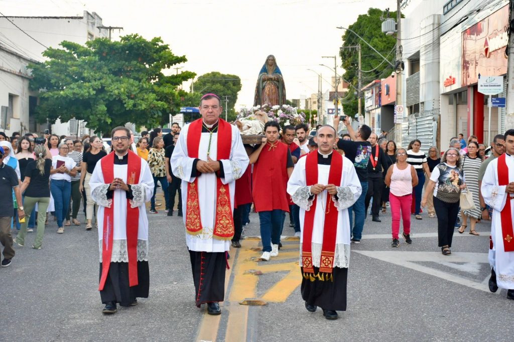 Na última sexta-feira, 3 de abril, às 17h, a Diocese de Cajazeiras viveu um dos momentos mais comoventes da Semana Santa: a tradicional Procissão do Senhor Morto. Reunidos na Catedral Diocesana, fiéis, leigos, religiosas, religiosos, diáconos e sacerdotes, juntamente com o bispo diocesano Dom Francisco de Assis, seguiram em caminhada até a Matriz de Nossa Senhora de Fátima, em um percurso marcado por silêncio, oração e profunda reflexão.
